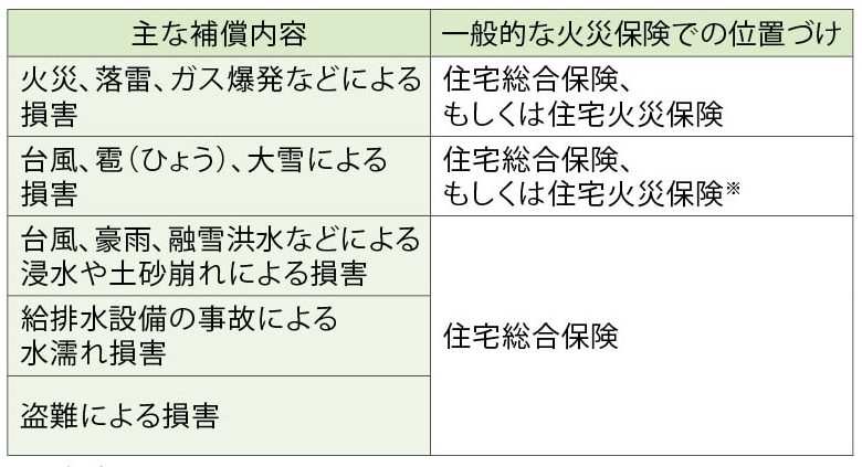 出所:日本損害保険協会HP「火災保険 補償内容」を基に日本FP協会作成