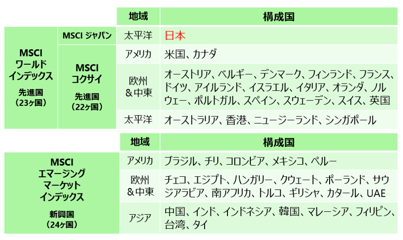 構成国や構成銘柄の選択基準はすべてルール化されて外部へも開示され、恣意的に行われない形になっています。一定のルールのもとで計算され続けているのがMSCI ACWIです。