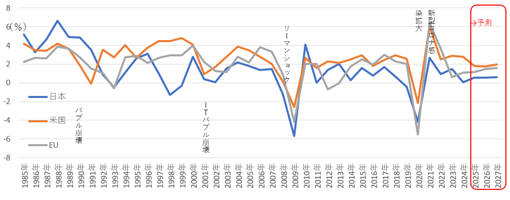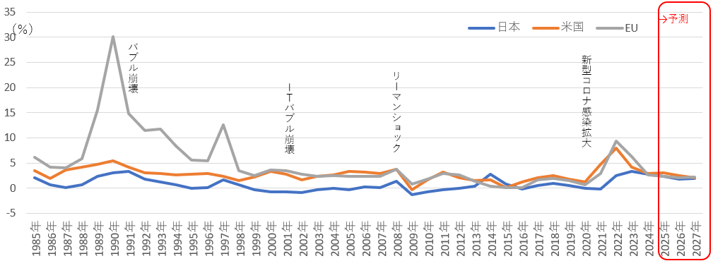 2008年に起きたリーマン・ショックは、米国の住宅バブル崩壊が引き金となりました。サブプライムローン問題により住宅ローンが不良債権化したことから、米国の株価が暴落し、大手投資銀行リーマン・ブラザーズの破綻を契機に、世界的な金融危機、景気後退へと発展した出来事です。平成バブル崩壊もリーマン・ショックも、不動産バブルの崩壊を主因とするものですが、欧米は長期のデフレには陥りませんでした(図表1-1、1-2)。