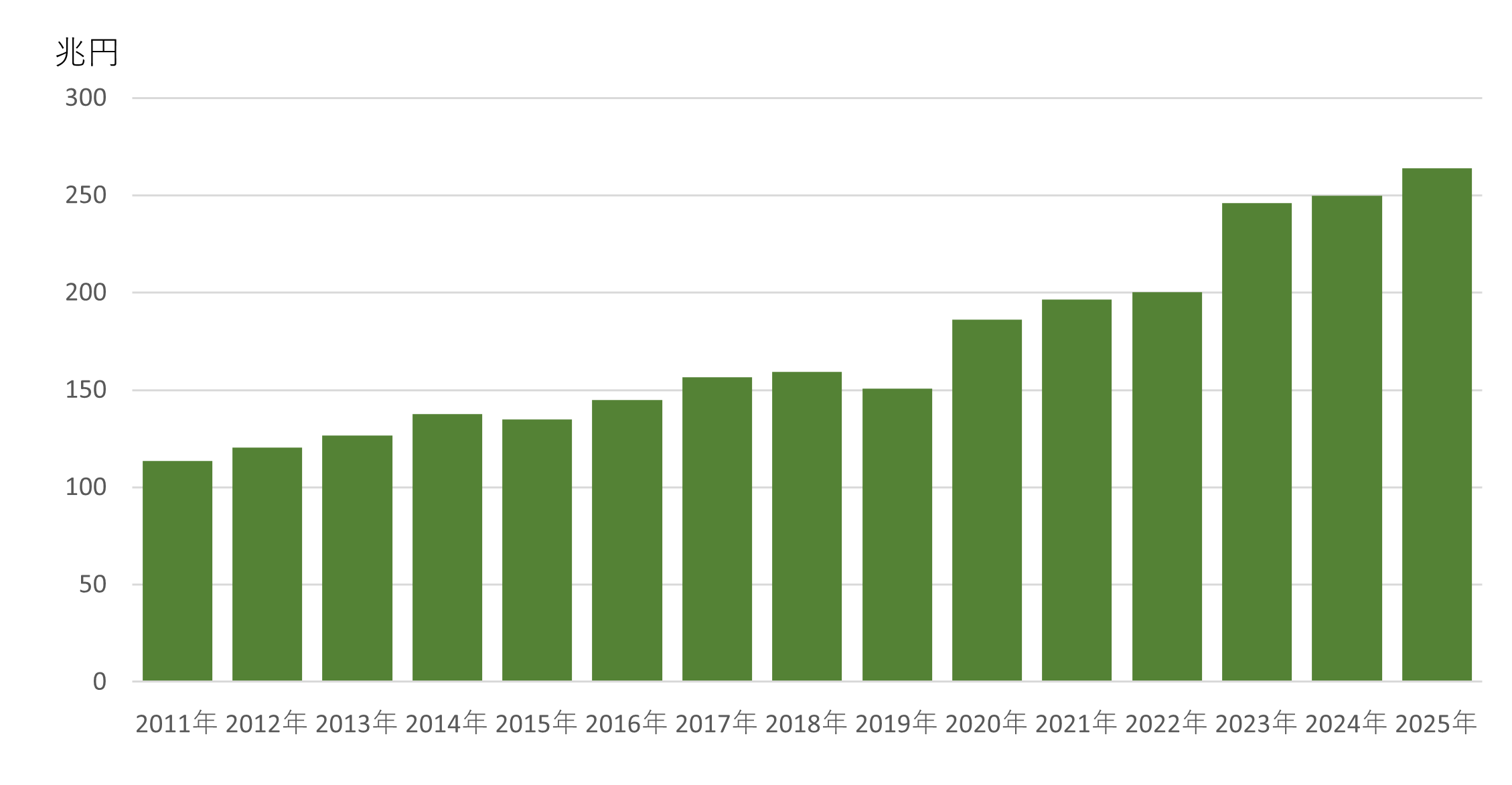 公的年金の運用資金を預かっているのは、GPIF(年金積立金管理運用独立行政法人)です。2025年6月末の運用資金残高は、時価で263.8兆円です。10月6日に日経平均株価が史上初の4万8千円台になったこともあり、2025年10月現在では、この残高がより膨らんでいると推察されます。