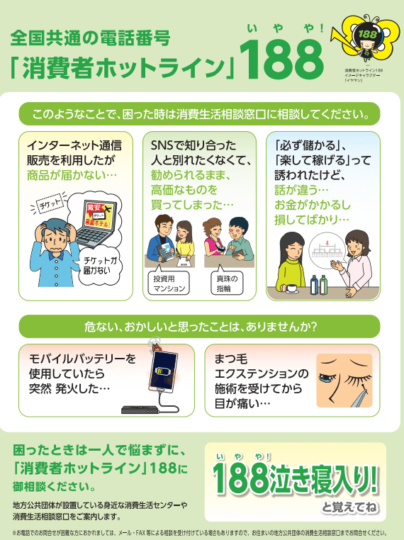 出所:消費者庁 消費者ホットライン啓発資料「188 消費者ホットラインの資料」