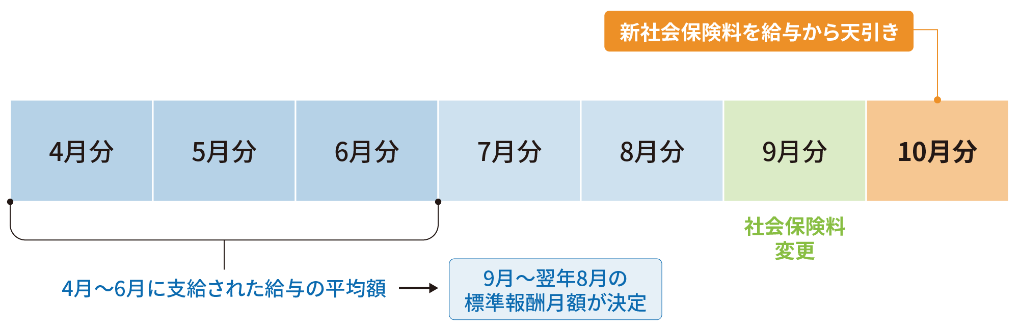 標準報酬月額は、毎年4月・5月・6月の3カ月間に支払われた給与(基本給に残業手当などの諸手当を含む)の平均額を基に定時決定され、決定された年の9月から翌年8月まで適用されます。
