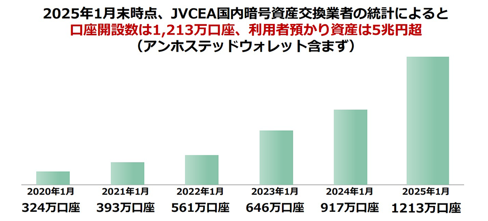 日本国内でも利用者口座数は増加傾向が続いています。さらに、2026年度税制改正大綱において、暗号資産の利益に対する課税方式を、総合課税(最高税率約55%)から申告分離課税(所得税15%)へ変更する方針が示されました。税負担の大幅な軽減が、国内市場のさらなる活性化を後押しすると期待されています。